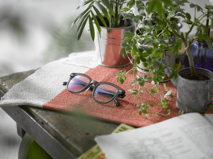 ビンテージフレームでよく見られる鍵穴の形状のキーホールブリッジが特徴的なボストンシェイプのセルフレーム。程良いボリューム感で柔らかな表情に仕上げてくれる秀逸なデザインです。