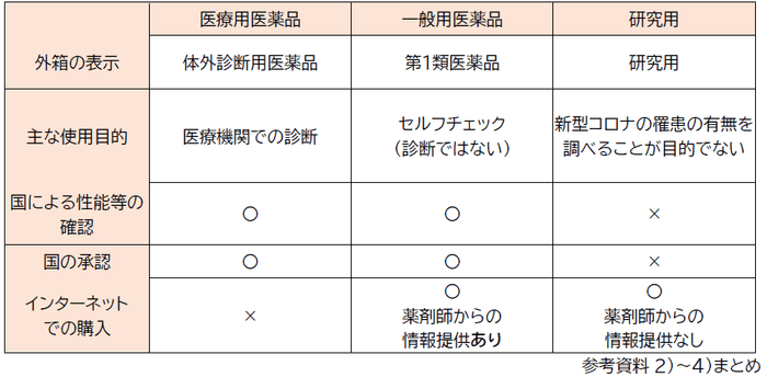 新型コロナの検査キット(抗原検査)は、ドラッグストア、インターネット等で購入可能な製品がありますが、その違いを知っていますか?
