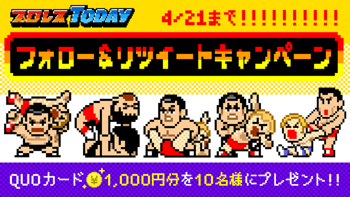 プロレスTODAYでは、日頃のご愛好に感謝しまして公式Twitterにてフォロー&リツイートキャンペーンを実施しています!