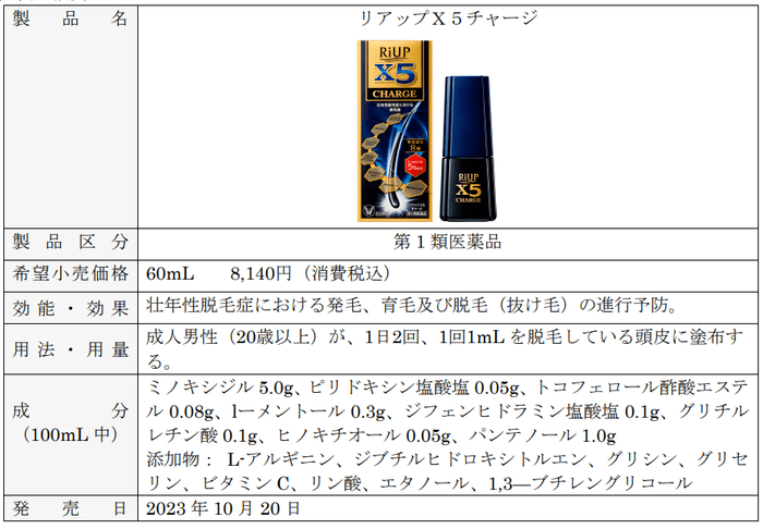 https://brand.taisho.co.jp/riup/ (リアップX5チャージ情報は 2023 年 10 月頃の公開予定)
