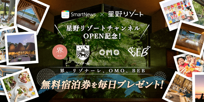 【SmartNews×星野リゾート】ニュースアプリ「SmartNews」内に「星野リゾートチャンネル」を開設 ~開設キャンペーンとして毎日宿泊券をプレゼント~ 開始日:2022年1月31日