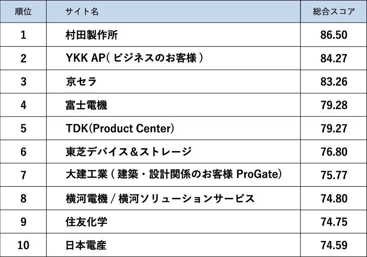 BtoBサイトのコンテンツコミュニケーション力ランキング 第1位は「村田製作所」