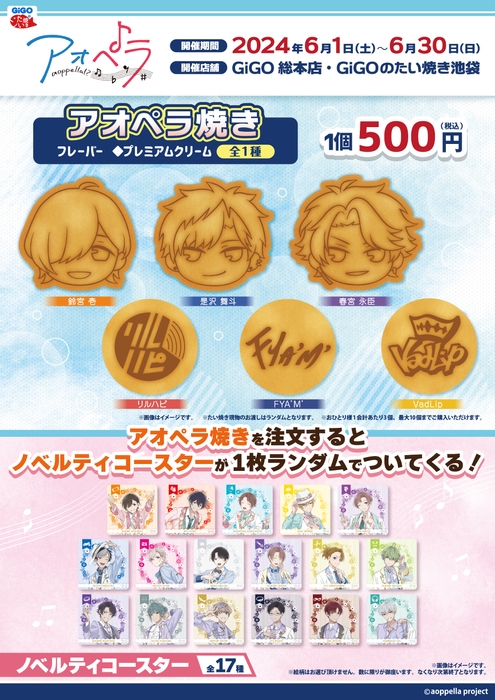 ※もらえるコースターの絵柄はアオペラ焼きと同じ絵柄になります。