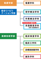 ■医療技術学部:臨床検査学科、臨床工学科、診療放射線学科、鍼灸学科