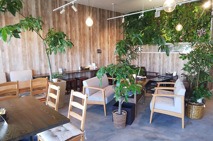 長野県長野市稲里町中央の長野南バイパスに面した有名花屋内のカフェです。
