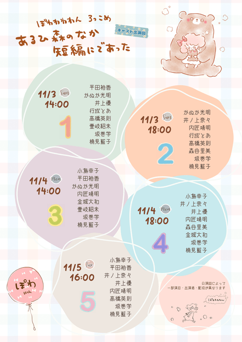 ぽわわわわん ろっこめ『あるひ森のなか短編にであった』が2024年11月3日 (日・祝) 〜 2024年11月5日 (火)に調布市せんがわ劇場(東京都 調布市 仙川町 1丁目21番地5)にて上演されます。