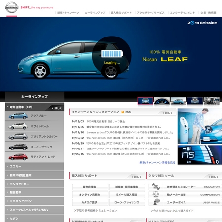 ゼロ・エミッションの電気自動車(EV)「日産リーフ」のサイトをリニューアル