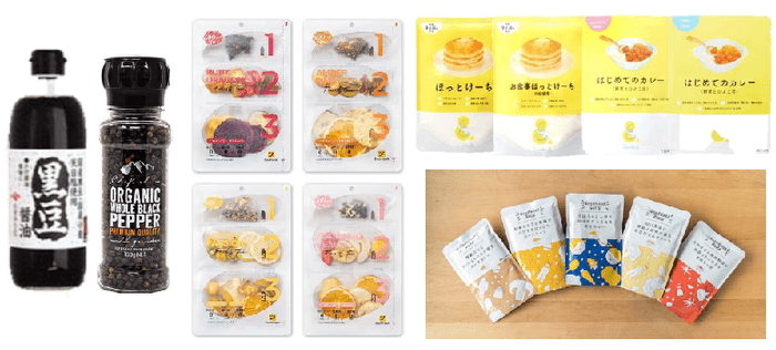この店舗から取り扱いを始めるナショナルブランド商品は約70種類!国産の黒豆と国産小麦でつくったこだわり醤油やオーガニックブラックペッパーなどの調味料、人気の台湾茶、お茶と合わせるドライフルーツ、素材や食品添加物に配慮したお子様用ホットケーキミックスやレトルト商品など幅広く取りそろえます。