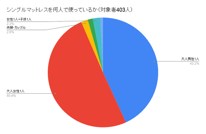 「シングルサイズのマットレスを何人で使っているか」を調査したところ、