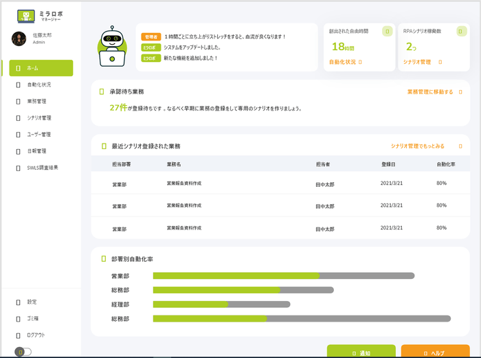 業務手順と自動化状況を可視化する「ミラロボマネージャー」をリニューアル!