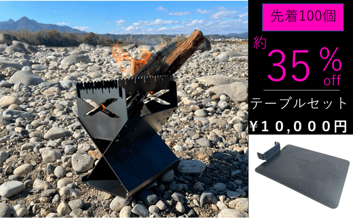 串焼きが楽しくなる焚き火台『マルチトランスキャンプフャイヤーX』