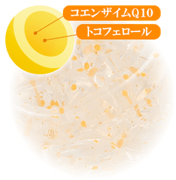 新鮮なビタミン(コエンザイムQ10&トコフェロール)を濃縮して球体に閉じ込める