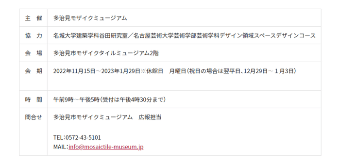 【名城大学】モザイクタイルミュージアム×名城大学×名古屋芸術大学 産学連携プレ企画展