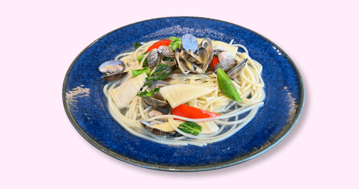 信州春野菜と山菜のボンゴレパスタ