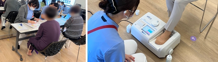 講座終了後には、健康啓発の一環として 、医誠会国際総合病院 臨床検査部による無料骨密度検査を実施しました。測定結果はその場でご確認いただけ、臨床検査技師が丁寧にご説明いたしました。