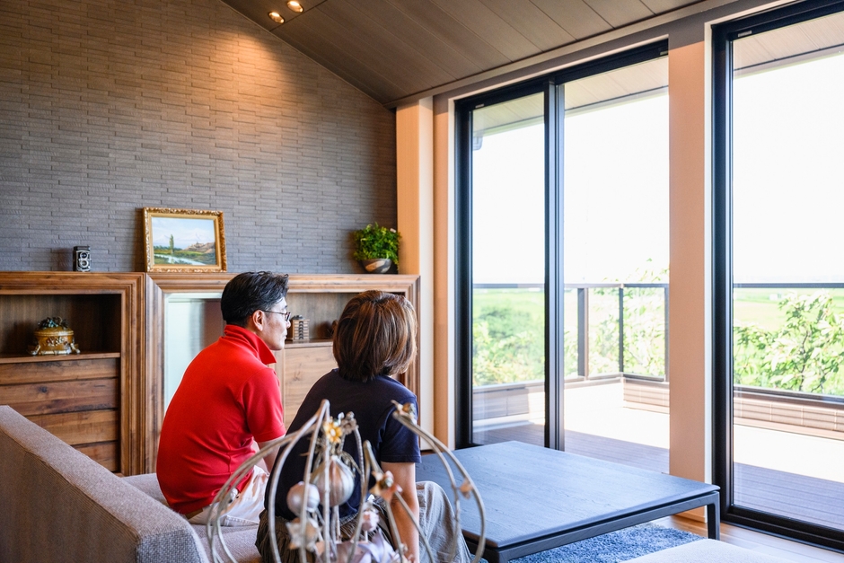 「正直、広い空間ができるなら軽量鉄骨でも鉄筋コンクリートでもかまわないと思っていました。しかし展示場を見て、和モダンの木の重厚さと天井高3m以上の広さに感激。木造なら周囲の景観ともマッチすると即決しました。」(夫・Jさん)