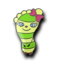 とっても可愛らしい「ホコちゃんピンズ」のご依頼主は、帯広市の活性化を目指すオビヒロホコテン事務局様。作品のモチーフになっている「ホコちゃん」のデザインは、足の裏に目・鼻・口のついたオリジナルキャラクターで、親指に結んだ赤いリボンを見ると性別は女の子。緑と黄色のボーダー仕上げが活発な雰囲気を放ちます。