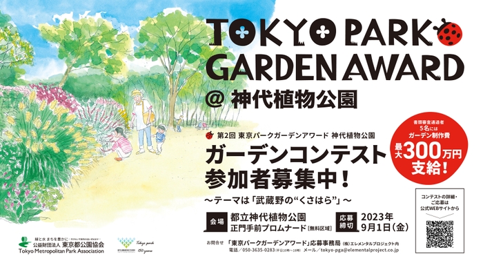 神代植物公園で開催される第2回東京パークガーデンアワードへの参加者を現在募集中です!舞台となる神代植物公園は、武蔵野の面影が残り、広大な敷地を有する、日本を代表する植物公園です。その “おもてなしの顔”となる正門手前プロムナード(無料区域)に、コンテストガーデンを制作いただきます。2回目を迎え、ますます注目が集まる新しいガーデンコンテスト「東京パークガーデンアワード」にみなさま奮ってご応募ください!