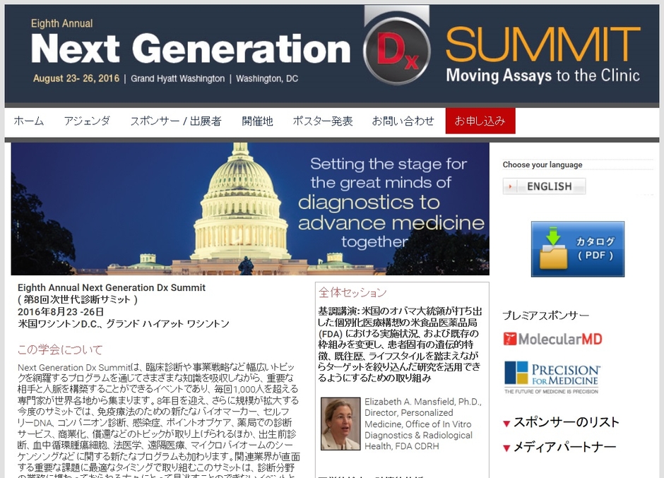 株式会社グローバル インフォメーションでは、皆様の利便性を図る為に、日本語、英語、韓国語、中国語で「Eighth Annual Next Generation Dx Summit-第8回次世代診断サミット」の情報を提供するとともに、学会の参加のお申し込みを承っております。