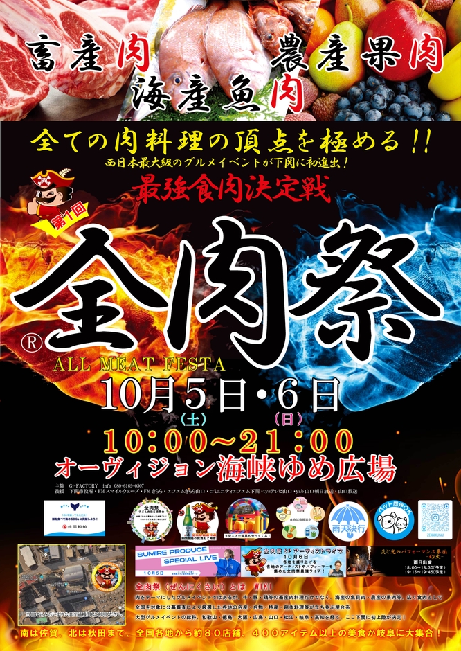 Gi-FACTORYは、大型野外グルメイベント『全肉祭』の2024年下半期ツアーを、山口県 2会場・岡山県・徳島県・和歌山県・高知県・島根県・岐阜県の8都市で10月よりスタートします。