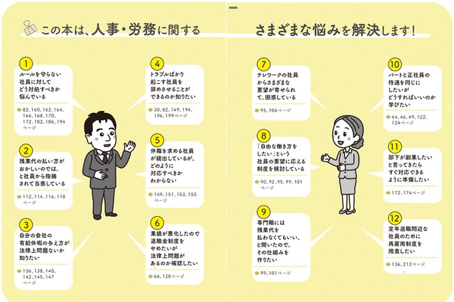トラブル解決の武器として気になる項目から読んでもよし、日常の中で頼れる辞書として使ってもよし。人事・労務をイチから学ぶために、最初から読んでもよし。 みなさまの用途に合わせた「相棒」として、ご活用ください。