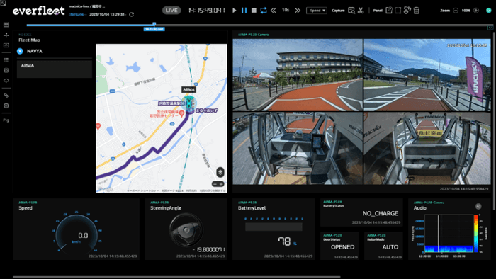 自動運転の実用化に向けて、車室内の乗客や車両周辺の状況を遠隔地からモニタリングするための統合管理プラットフォームです。モビリティの位置情報、車内外のカメラ映像、車速・ステアリング・バッテリー残量などの車両データを一元的に可視化し、信号機などの交通インフラと連携した外部データとの統合も可能です。これにより、遠隔地からリアルタイムに運行状況を把握し、安全かつ安心な自動運転モビリティの運用を支援します。さらに、複数地域に分散する多様なモビリティを同時に群管理できるほか、運行中の異常をシステムが自動検出・通知することで、1人の遠隔オペレータによる効率的な運行管理を実現。省人化によるオペレーション効率の向上と交通採算性の改善にも貢献します。