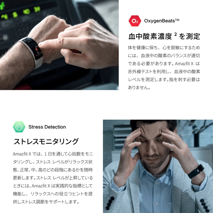 超ワイドなAMOLED高精細3Dカーブスクリーンを採用した「Amazfit X」が登場!連続24時間の心拍数および血中酸素モニタリング、睡眠の質、ストレスレベルのモニタリング、および自動スポーツ検知機能を搭載した「Amazfit X」は、湾曲したリチウムイオンバッテリーの電力を利用して、1回のフル充電で最大7日間の使用が可能です。スマートウェアラブルデバイスにおける技術的なブレークスルーを象徴する、スマートウォッチの新しい標準を実現しました。