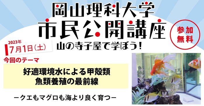 【岡山理科大学市民公開講座】好適環境水による甲殻類、魚類養殖の最前線-クエもマグロも海より良く育つ-|日時:2023年7月1日(土)13:30~15:00 開催!参加無料