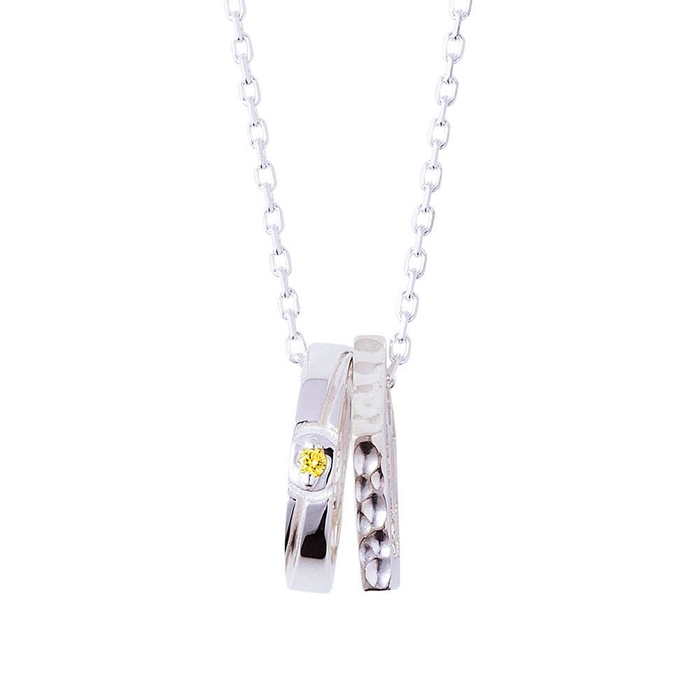 もう一方は青い監獄をイメージした五角形リングに槌目加工を施した二連ネックレスです。