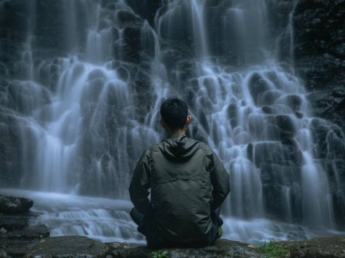 5:15 母の白滝に到着 滝の目前で集中力を高める