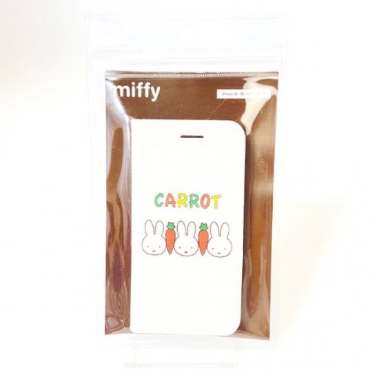こちらも、第二世代のSE対応の手帳型ケースです。表面にはミッフィーのフェイスとニンジンが並んでいます。