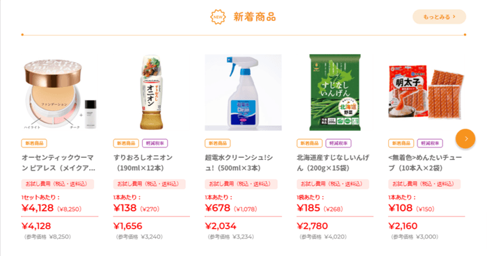 ■会員登録をするだけで、一商品につき一度だけ半額でおためし購入が可能です。