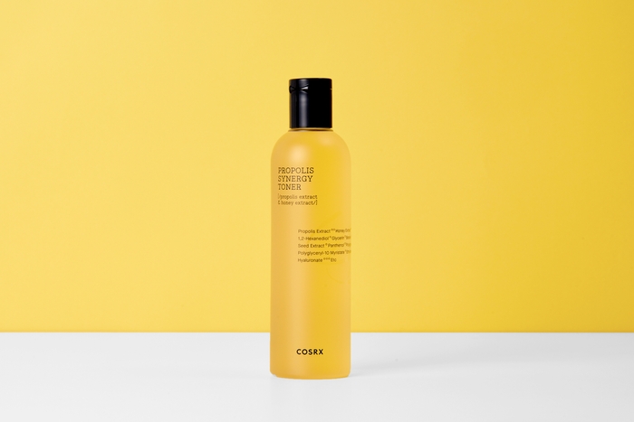 スキンケアの最初の段階で使う「フルフィットプロポリスシナジートナー」は、プロポリスエキス72.6%、はちみつエキス10%を配合し、健康的でハリのある肌に導く化粧水です。プロポリスには保湿効果だけでなく、免疫力強化、抗菌効果もあり、外的刺激などで荒れた肌を和らげ、エネルギーをプラス。とろみのあるテクスチャーなので肌への馴染が良いと評判です。