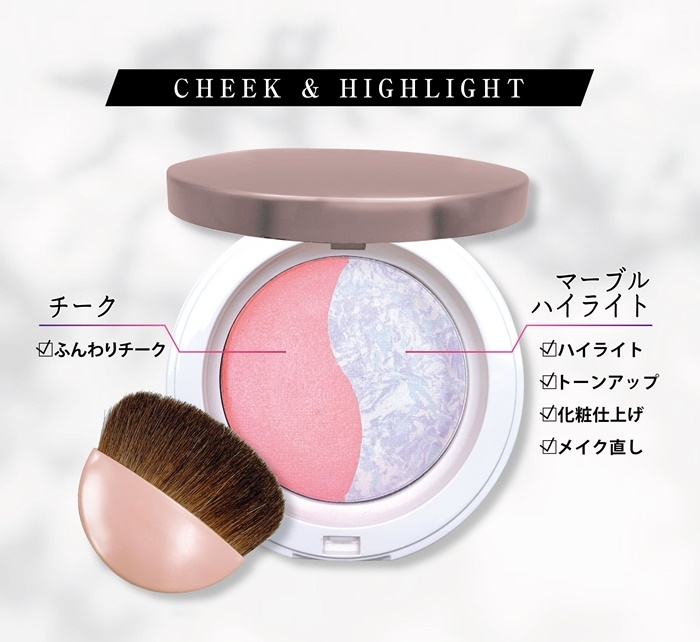 トーンアップ、ハイライト、チークの3つの役割をマルチにこなす使いやすいフェイスパウダーです。