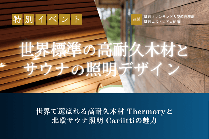 株式会社バーグマン(本社:東京都港区、代表取締役社長:笠間聖司)は、5月19日と20日に、駐日エストニア大使館と駐日フィンランド大使館商務部後援で「世界標準の高耐久木材とサウナの照明デザイン」特別イベントを開催しました。イベントでは同社の取り扱う、サーモ加工木材の世界最大メーカーThermory(サーモリー/エストニア)と、サウナ・スパ照明の代表的ブランドCariitti(カリッティ/フィンランド)を紹介。両社から担当者が来日し、その特長や採用事例などについて参加者に説明しました。