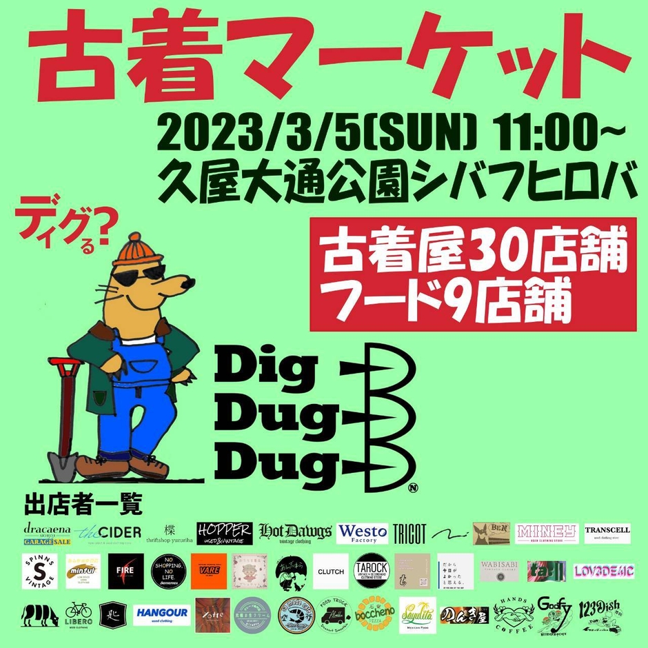 愛知県北名古屋市で古着卸倉庫Broad Base NAGOYAを運営する株式会社Ease(所在地:愛知県中区、代表取締役:横井 竜二)は、大型古着イベント『Dig Dug Dug』を3月5日に愛知県名古屋市のHisaya-odori park シバフヒロバで開催いたします。