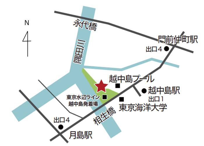 ●東京メトロ有楽町線・都営地下鉄大江戸線 月島駅4出口より徒歩10分