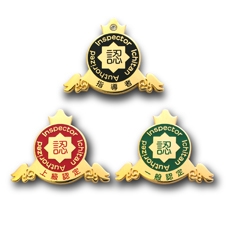 ピンズファクトリーのお送りしたサンプルの出来栄えをご覧になり、その品質とリーズナブルなコストパフォーマンスが決め手となって、オーダーメイドの認定徽章を製作された群馬県太田市の株式会社イチタン様。1951年に自動車部品主体の鍛造メーカーとして創業された「技術集団」で、社内での厳格な課程を経て認定される「外観検査員」に進呈するための「認定バッチ」は、仕上げの色で使い分けられる3つの仕様が認定の種類を表した作品です。