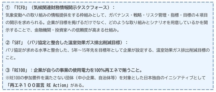 企業の脱炭素経営の取り組みは、世界基準である以下のイニシアティブによって状況を把握できる。