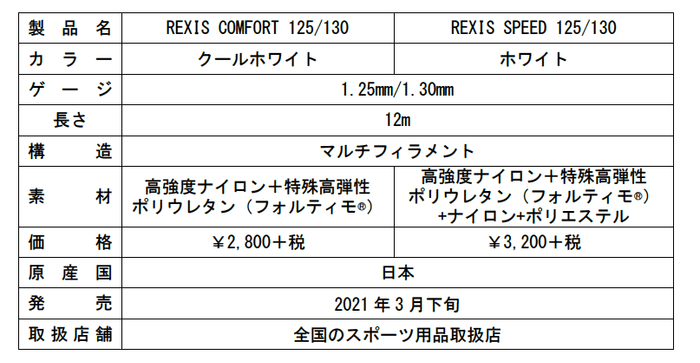 反発性と耐久性に優れたテニスストリング「REXIS」から柔らかいホールド感の「REXIS COMFORT(レクシス コンフォート)」爽快な弾きの「REXIS SPEED(レクシス スピード)」 2021年3月下旬より発売