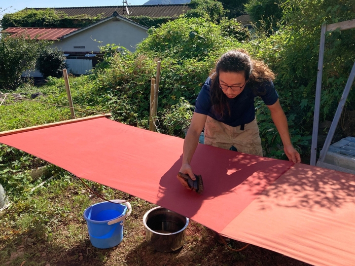 館内には、温泉や草木を利用して布を染め上げる「温泉染」を使った夏祭りの装飾が登場します。この装飾は、別府市で温泉染の研究や作品制作に取り組む、温泉染研究所の行橋智彦氏が手掛けました。温泉染はひとつの染料でも、泉質の異なる温泉とかけ合わせると沢山の色味が生まれる特性があります。多様な泉質を使い分け、温泉の個性を生かした装飾で、「地獄の夏祭り」へ誘う空間を演出します。