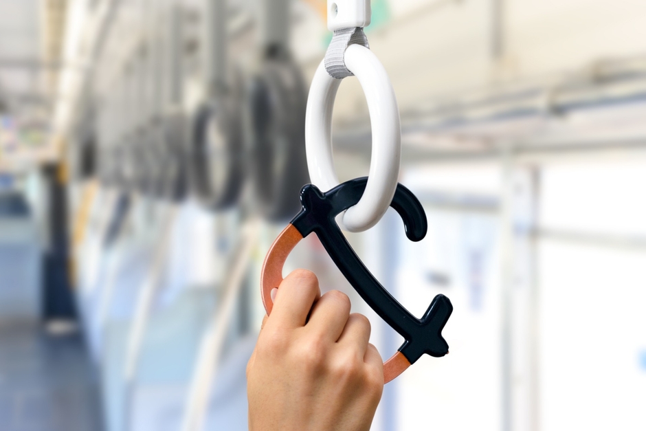 さらに、様々な利用シーンを想定した形状で、老若男女の使用に配慮したユニバーサルなデザインとなっております。例えば電車やバスでの吊り革利用の際も、手でしっかりとグリップできる形状のため、安心してご利用いただけます。(意匠登録出願済)