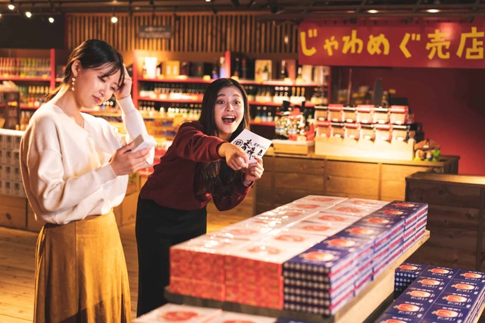 チェックアウト前に最終テストを実施します。青森屋内のじゃわめぐ売店で、買い物リストが渡されます。買い物リストは、「500円でけぇる、んめぇもん買ってけぇ(意訳:500円で買えるおいしいもの買ってきて)」のように、青森の方言で書かれており、無事解読し、購入することができたら最終テストの合格です。テストに合格すると青森の方言て書かれた「あおもリンガル合宿修了証」をもらえます。