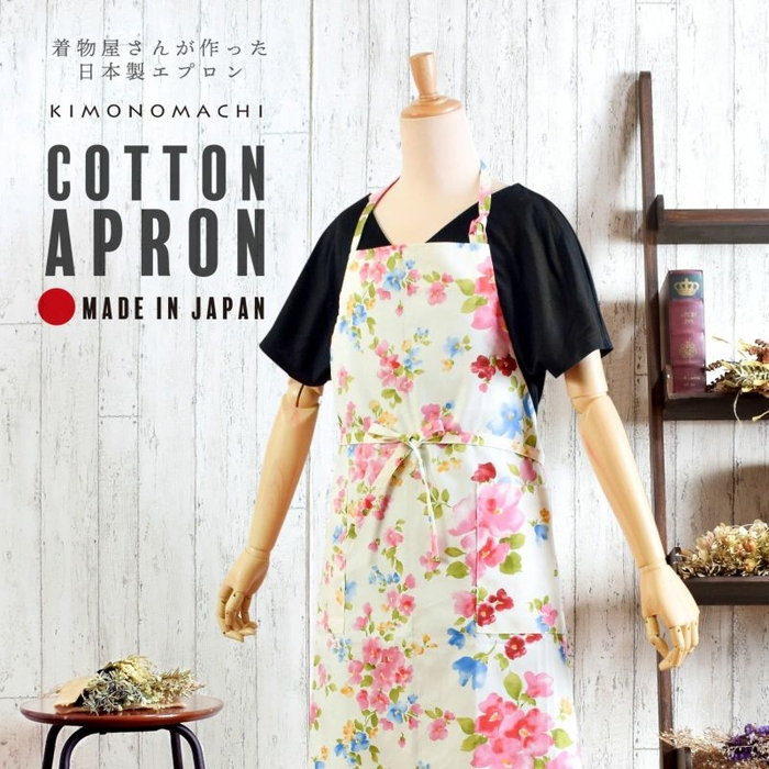 KIMONOMACHIオリジナルで人気の割烹着と同様、着物屋さんで丁寧に縫製された、ここでしか買えない日本製エプロンです。