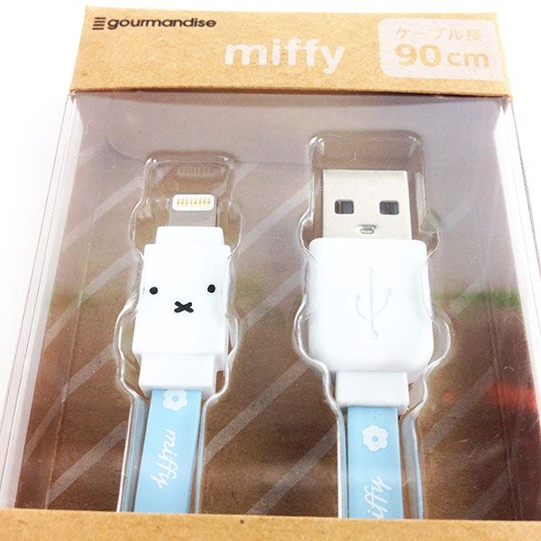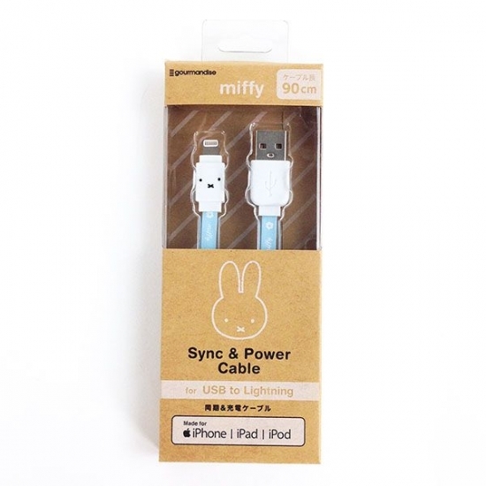ケーブルまでミッフィーのデザインが登場です♪パステルブルーのコードがキュートで、しかもミッフィーのロゴ入りです。差し込み口にはミッフィーのお顔まで♪楽しく充電できそうです。iphoneやiPad、iPodなどにお使いください。