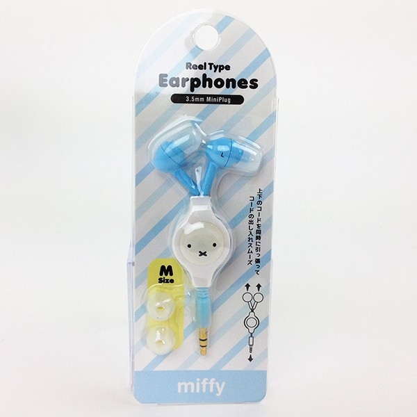 リール式のイヤホンもあります。パステルブルーがキュートで、リールの部分にはミッフィーのかわいいお顔が♡引っ張って巻き取るタイプなので便利です。携帯用にも便利なイヤホンですね。