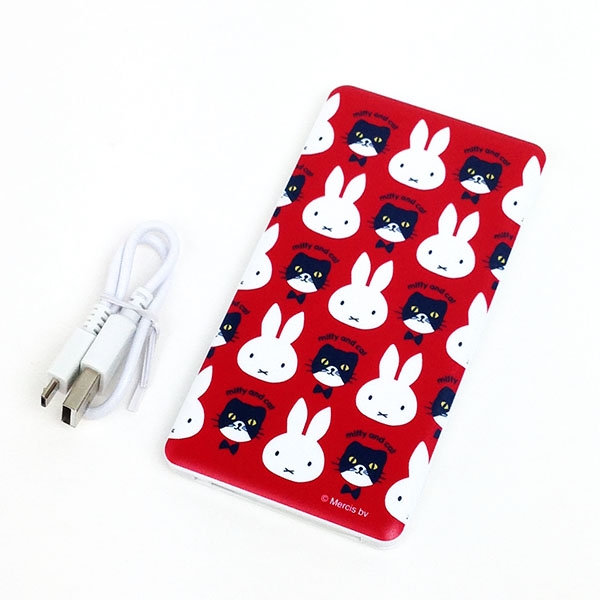 こちらはリチウムイオンポリマーの充電器です。赤い背景に、ミッフィーとキャットがデザインされています。フラットで持ち運びやすいサイズ感も嬉しいですね。