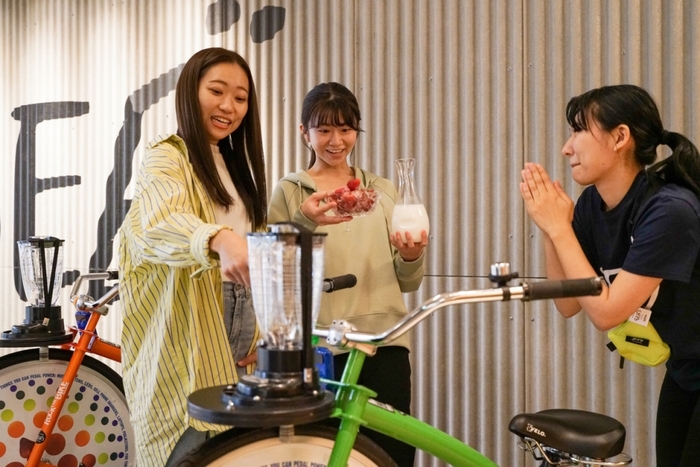 「ホテルで提供しているいちごスムージー用のミキサーが故障したので、手伝ってもらえますか。」とスタッフにお願いされるかもしれません。用意されるのは、ドリンクの材料となる春が旬のいちごと牛乳、そしてミキサー付の自転車。材料をミキサー付の自転車にセットして30秒ほど自転車を漕いでお手伝いしてあげましょう。頑張ったらお礼がもらえちゃうかも!