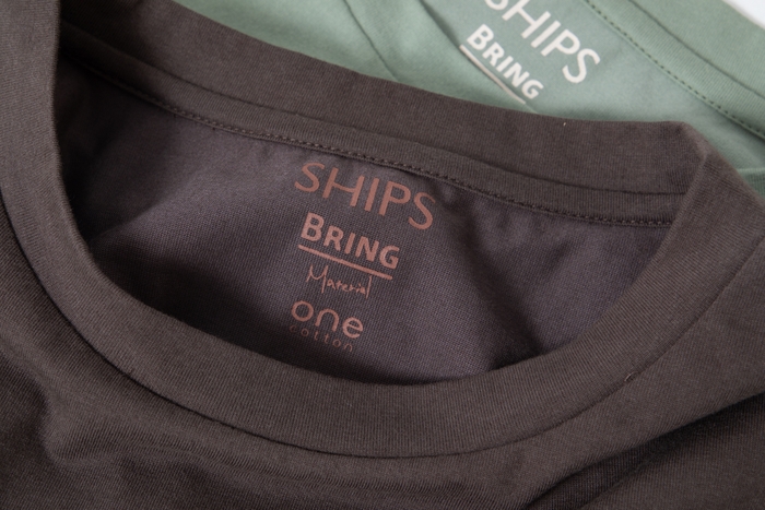 こちらは農薬を使用せず栽培されたオーガニックコットン(One Cotton)と前述のBRING™の再生ポリエステル糸を掛け合わせる事で天然繊維の風合いを保ちながら、速乾性を併せ持つSHIPS別注のオリジナル素材です。