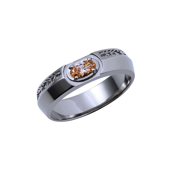 イメージカラーストーンを配しました。さりげない彫りがお洒落なデザインです